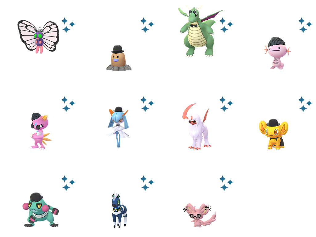 ・衣装を身にまとった「バタフリー」「ディグダ」「カイリュー」「ウパー」「ニューラ」「キルリア」「アブソル」「コリンク」「グレッグル」「シママ」「チラーミィ」が、「レイドバトル」でいつもより多く出現します。