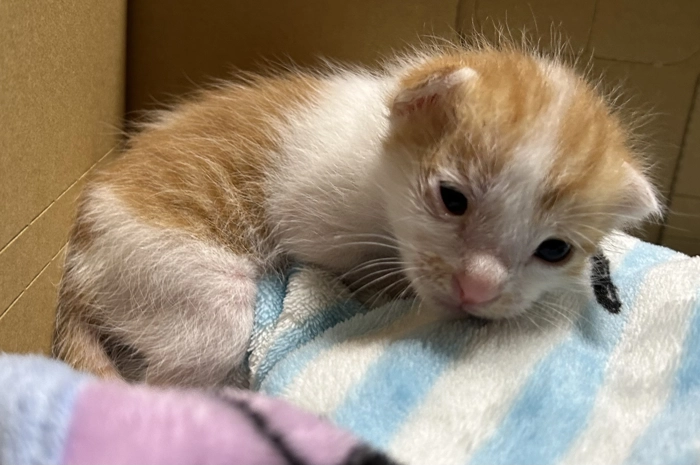 拾って来た猫は生後2〜3週間ほどだそうで、ちーとはるを拾って来た時より小さい…!