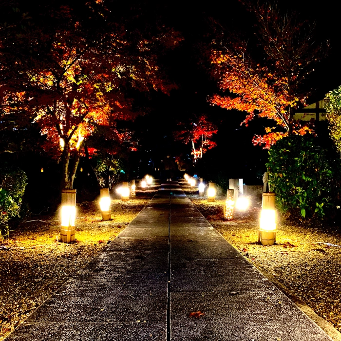 今年は既に終わってしまいましたが例年11月中頃~末にかけてライトアップが行われており、紅葉と和傘、竹灯籠が織りなす雅な景色を楽しむことが出来ます。本堂は400円で拝観することが出来、住職さんの話を聞きながら十一面観音立像を見ることが出来ます。