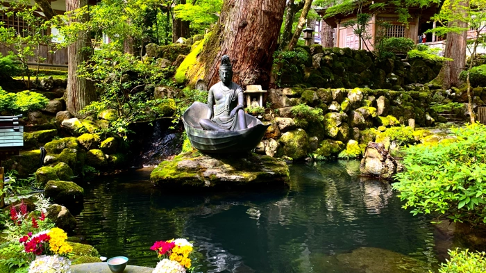 永平寺は曹洞宗の大本山であり、その開祖である道元が開山した寺院です。その寺域には大小70余棟の堂舎が並んでおり、禅修行の道場として今でも栄えています。