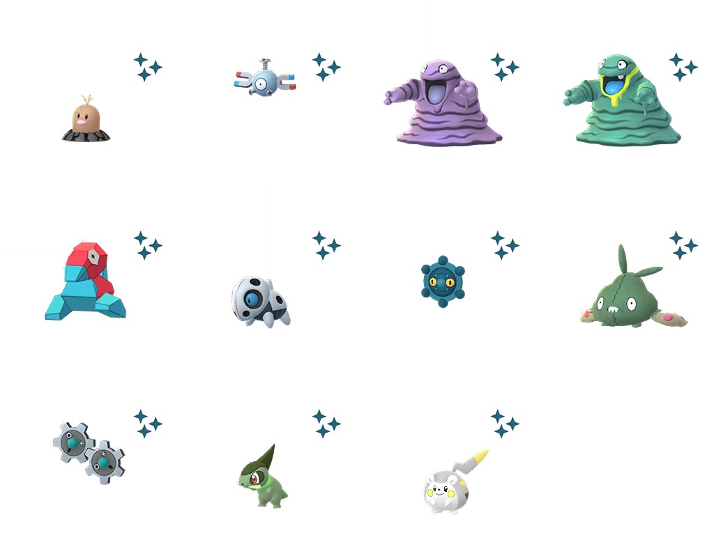 「ディグダ(アローラのすがた)」/「コイル」/「ベトベター」/「ベトベター(アローラのすがた)」/「ポリゴン」/「ココドラ」/「ドーミラー」/「ヤブクロン」/「ギアル」/「キバゴ」/「トゲデマル」/「ニャース(ガラルのすがた)」/「エアームド」/「クチート」