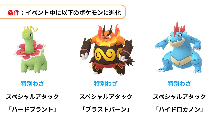 ・シーズン限定の「スペシャル背景」をともなう「チコリータ」「ワニノコ」「ポカブ」のいずれかとの出会い