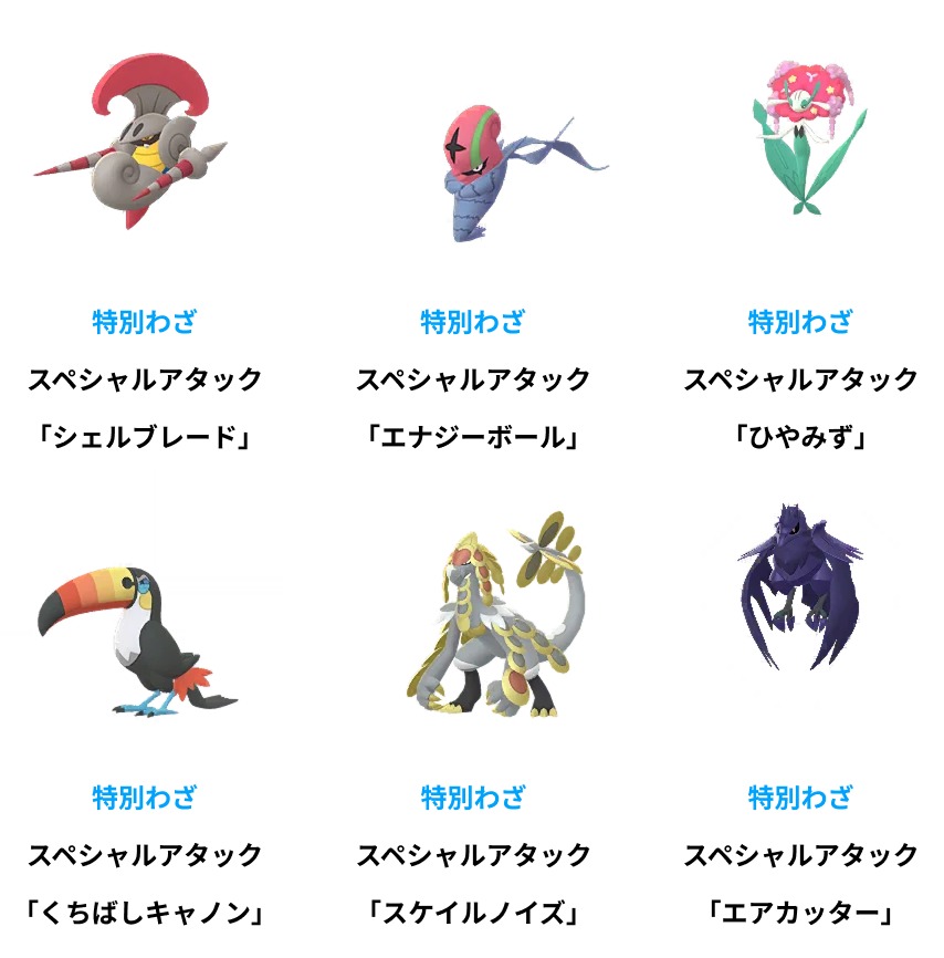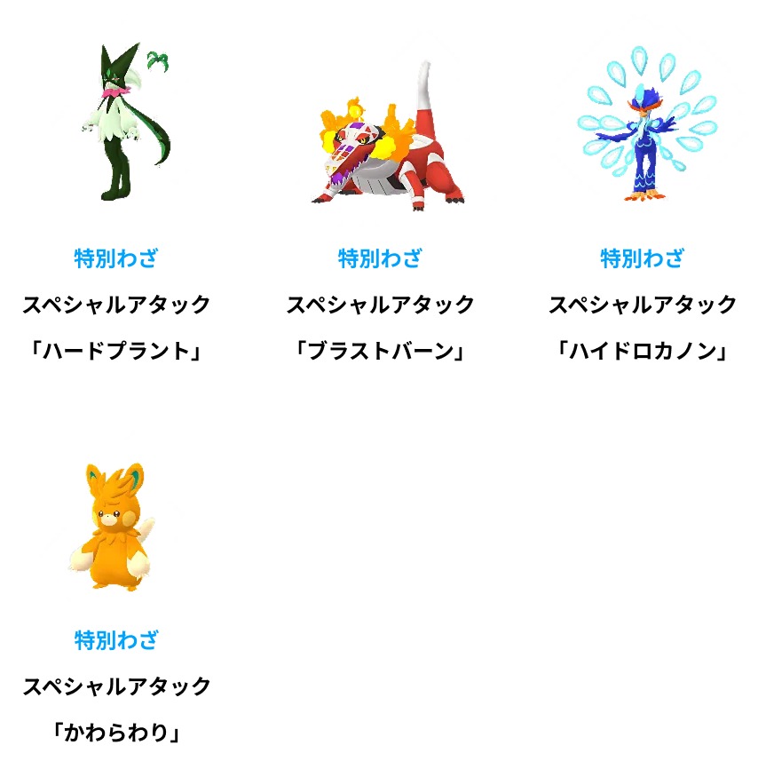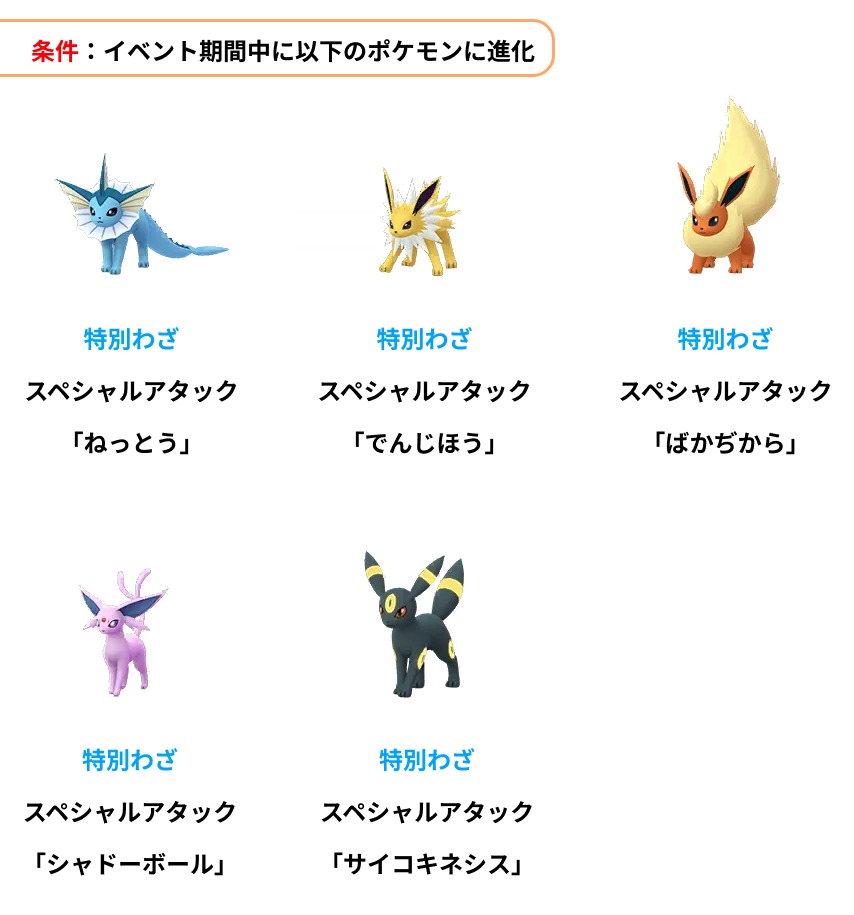 期間中、以下のポケモンは進化時に特別なわざを覚えます。