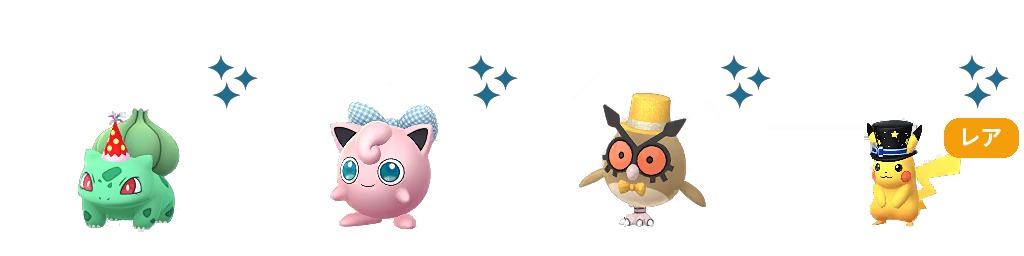・パーティートップハットをかぶった「ピカチュウ」と出会える