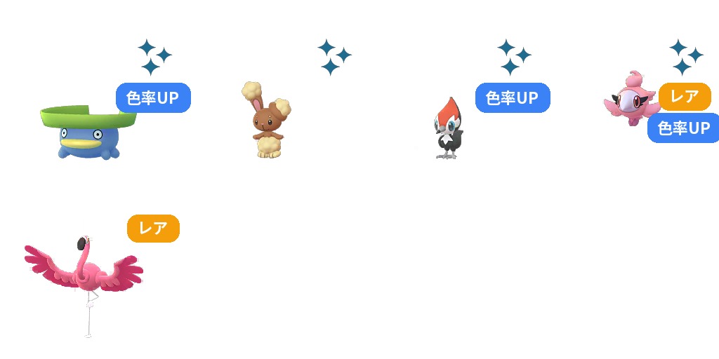・色違いの「ハスボー」、色違いの「シュシュプ」、色違いの「ツツケラ」と出会いやすくなる