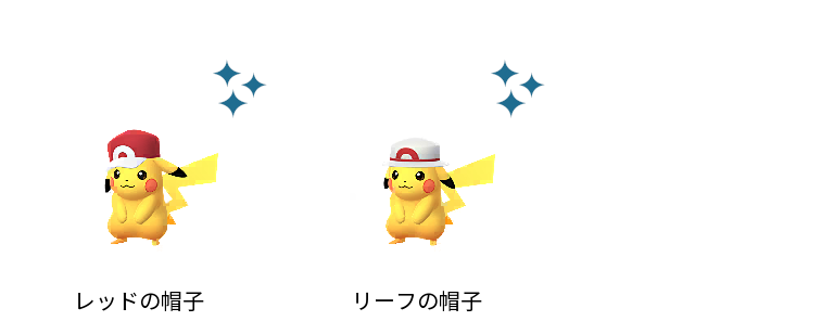 ・リーフの帽子をかぶった「ピカチュウ」(色違い有り)